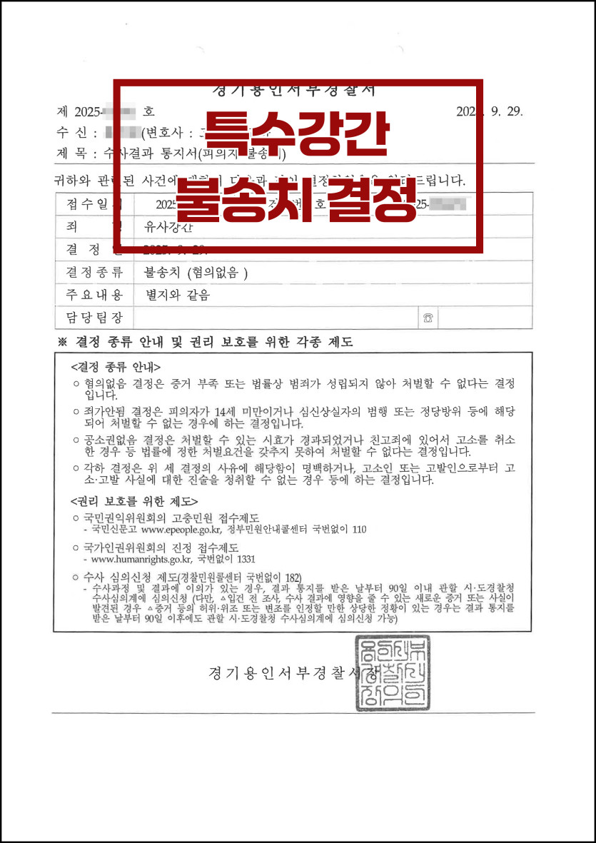 경찰 단계 '불송치 결정'으로 방어하였습니다.