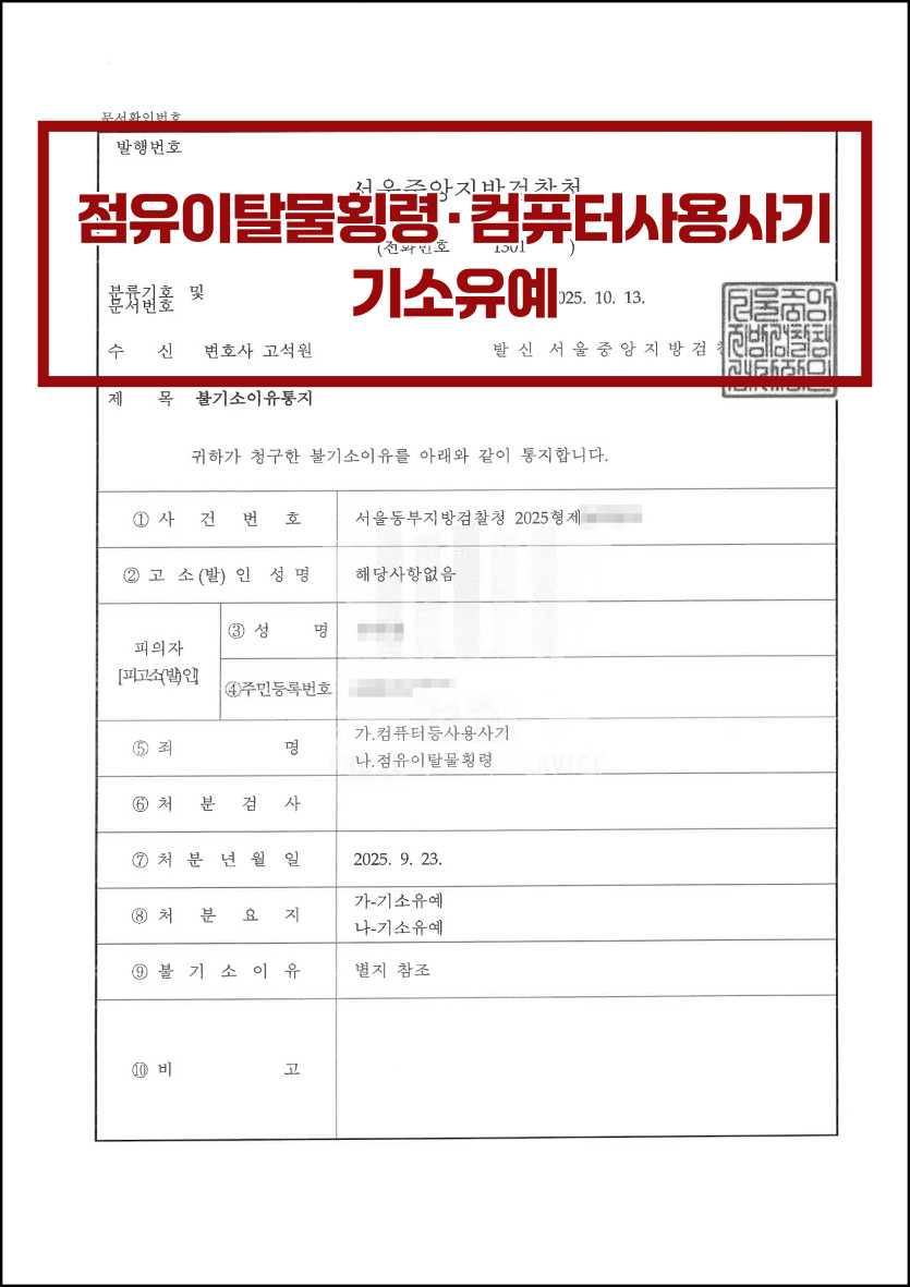 [점유이탈물횡령·컴퓨터이용사기] 분실 교통카드 횡령 기소유예 방어 사례