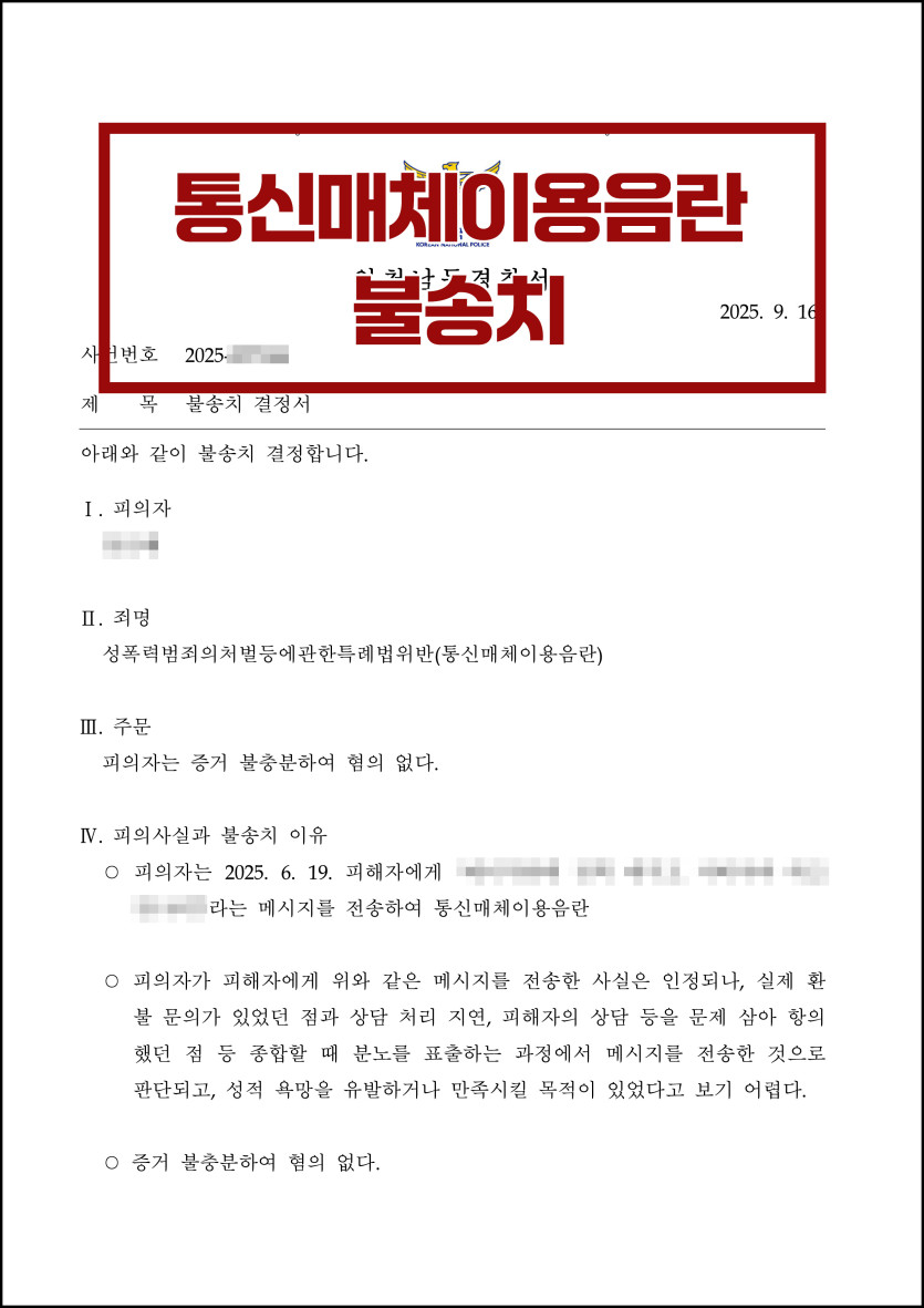 [통매음] 통신매체이용음란 불송치로 방어한 사례