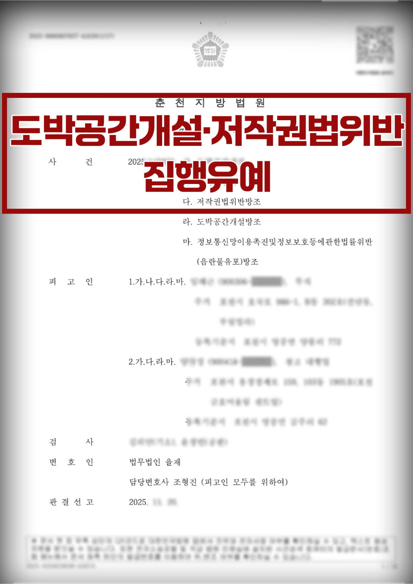 [도박공간개설 등]도박공간개설·저작권법위반 등 집행유예 방어 사례