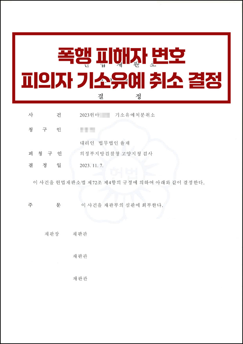 [의뢰인 기소유예 처분 취소] 의뢰인 무죄 위해 기소유예 처분 취소 사례