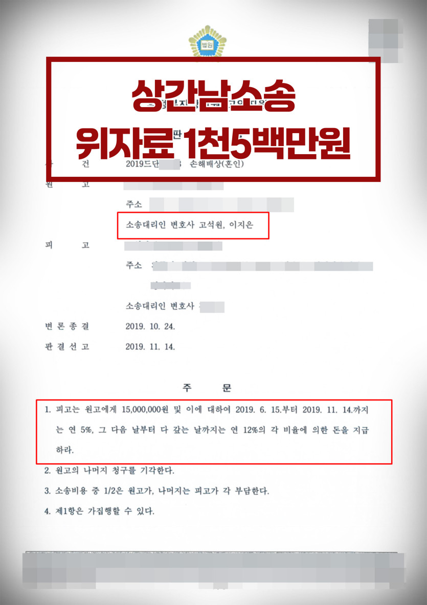 [상간남 소송] 위자료 1500만원 인정 받은 사례