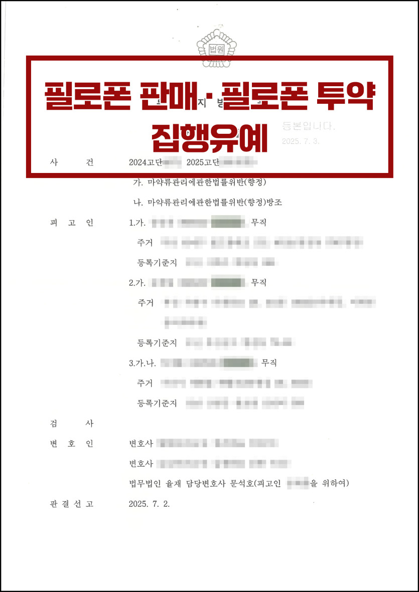 [마약류관리법 위반] 필로폰 판매·필로폰 투약 집행유예로 방어한 사례