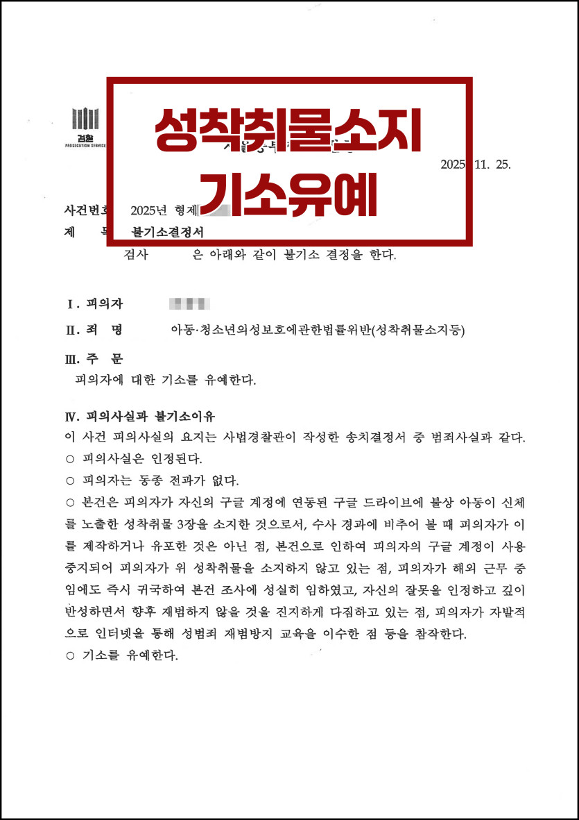[아청법 위반]미성년자 성착취물소지 기소유예로 방어한 사례