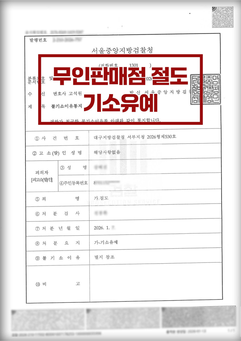 [절도] 무인판매점 절도 기소유예로 방어한 사례